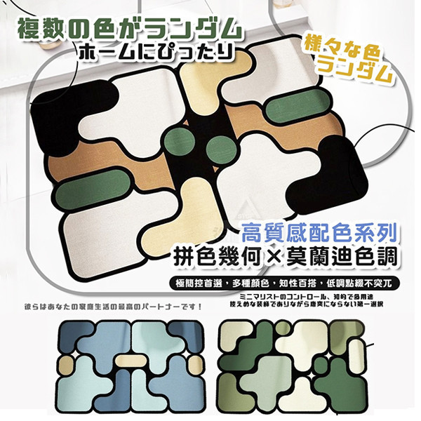 【高吸水速乾】幾何色塊防滑地墊|浴室廚房玄關適用