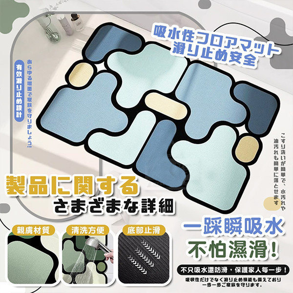 - 超強吸水力:踩上瞬吸水,保持腳底乾爽,浴室、廚房不再濕答答。