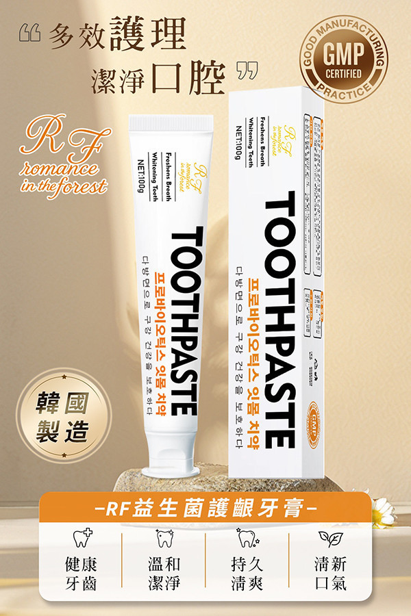【韓國RF益生菌護齦牙膏】100g|溫和潔淨・平衡菌叢・清新口氣・護齦防護